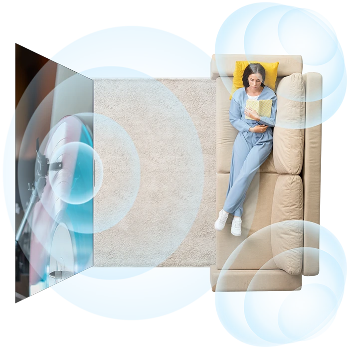 Y65シリーズは Dolby Atmos に対応。映像に合わせて立体的でダイナミックな音を再現します。まるで音に包まれるような臨場感で、細やかなサウンドまで鮮明に描き出し、映画の世界に深く引き込みます。