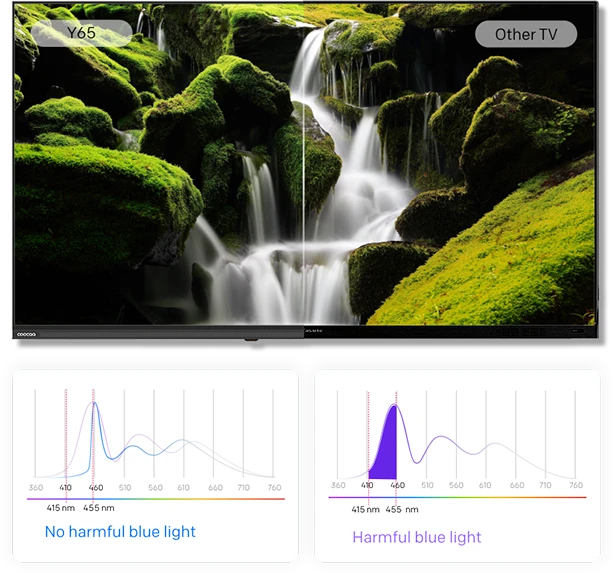 coocaa 独自のブルーライト低減技術で、長時間の視聴でも快適に楽しめる、目に優しいエンターテインメントをご提供します。