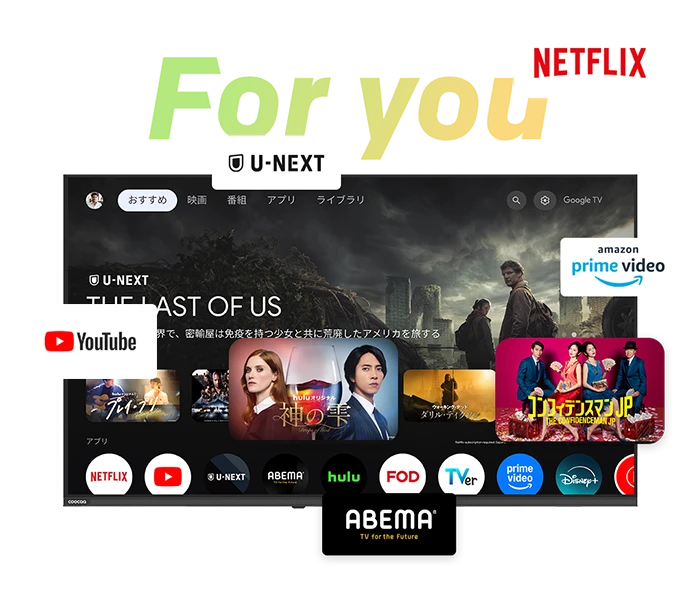 ※Google TV は、本デバイスのソフトウェア機能の名称であり、Google LLC の商標です。 Google、YouTube、Google TV、Google Cast は Google LLC の商標です。
