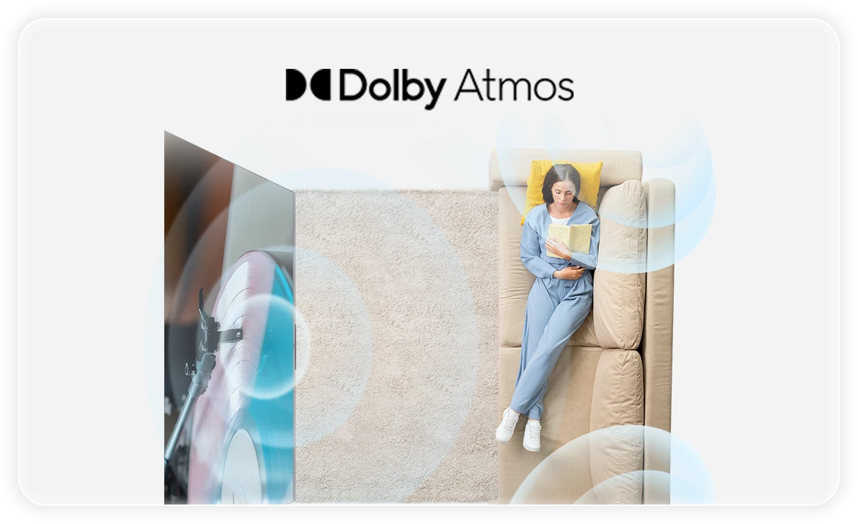 Y65シリーズは Dolby Atmos に対応。映像に合わせて立体的でダイナミックな音を再現します。まるで音に包まれるような臨場感で、細やかなサウンドまで鮮明に描き出し、映画の世界に深く引き込みます。