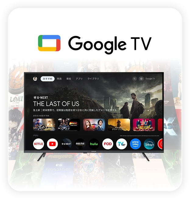 ※Google TV は、本デバイスのソフトウェア機能の名称であり、Google LLC の商標です。 Google、YouTube、Google TV、Google Cast は Google LLC の商標です。