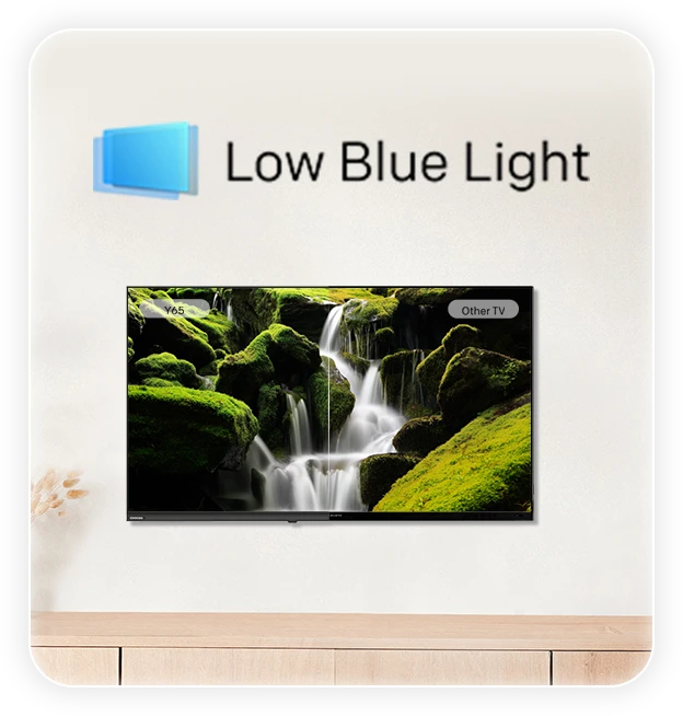 coocaa 独自のブルーライト低減技術で、長時間の視聴でも快適に楽しめる、目に優しいエンターテインメントをご提供します。